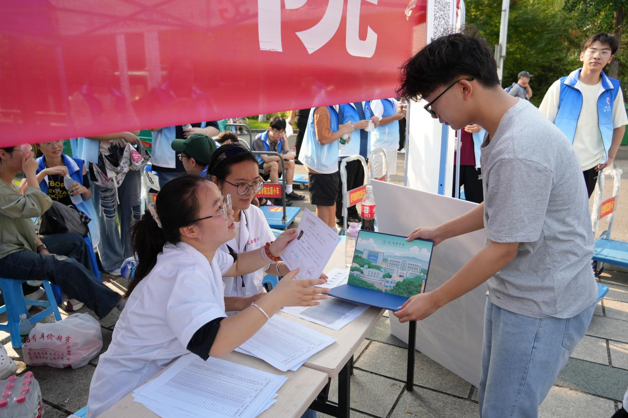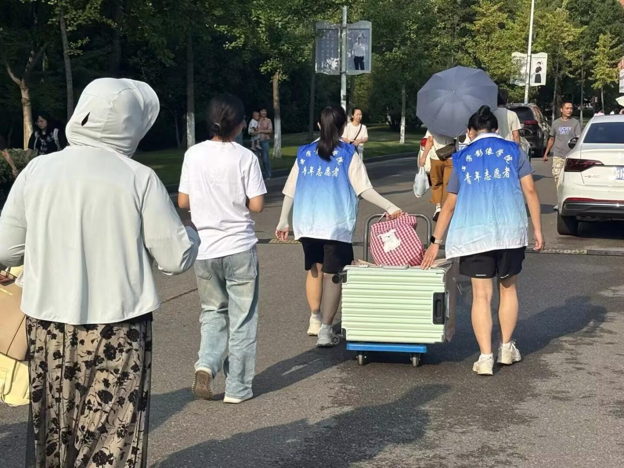 报到前,学院提前对新生宿舍各项基础设施进行全覆盖检查,保障新生住得安心又舒心。在新生报到处,学院优化报到流程,推出“一站式”报到服务,员工志愿者全程护航直到宿舍,让新生感到既安心又暖心。同时,学院准备了充足的饮用水和温馨的休息场所,让陪同的家长也能感受到学院的贴心与周到。在迎新现场,学院设置的“拍照打卡点”,免费为新生与家长记录下与学院的初遇时刻;员工志愿者们主动与新生及家长交流,分享校园生活经验和学习技巧,缓解他们初入校园的紧张与不安。一系列充满温情的举措,让新生们从踏入校园的那一刻起,就深深体会到了学院浓浓的人文关怀。