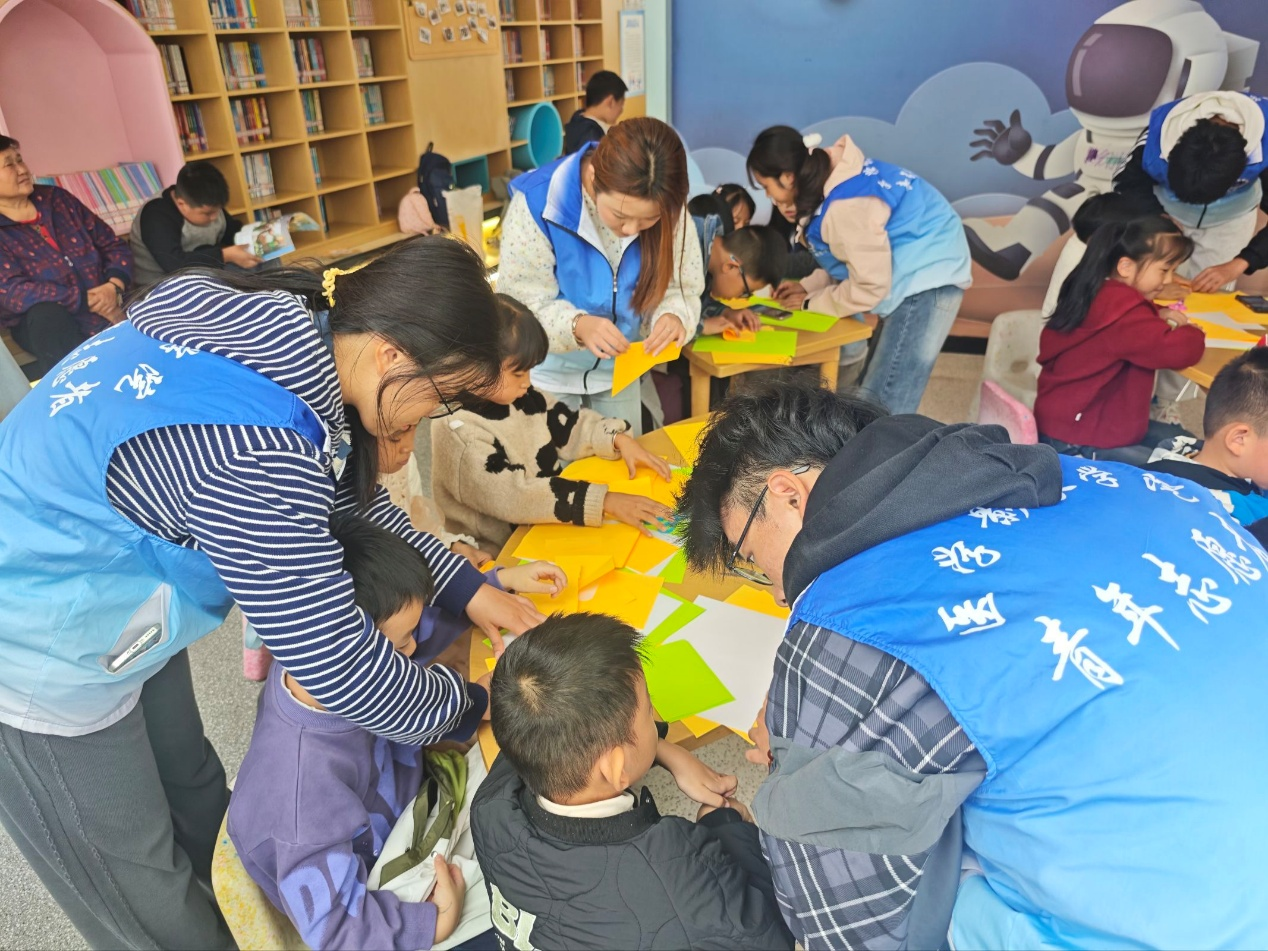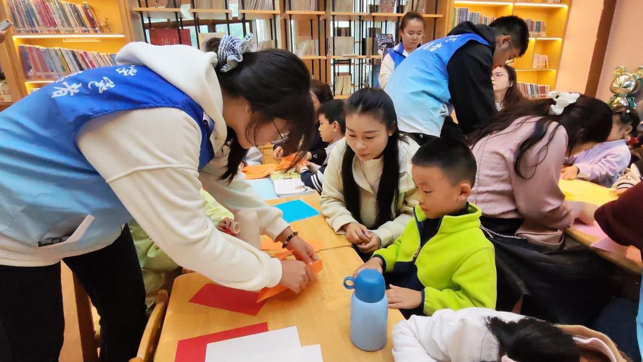 霜降童趣折枫叶,志愿温情伴成长。学院志愿服务队于近期先后前往江湾书院和白马书院开展“霜降童趣·枫叶巧折”系列活动。从引导家长与小朋友签到入场,到用趣味PPT宣讲霜降知识,再到分组协助孩子完成枫叶折纸、鼓励创意表达,志愿者全程贴心陪伴。活动尾声,2-3名小朋友主动分享作品与参与感受,全体成员合影留念,此次活动既锻炼了孩子的动手与沟通能力,也助力传递传统文化启蒙理念。